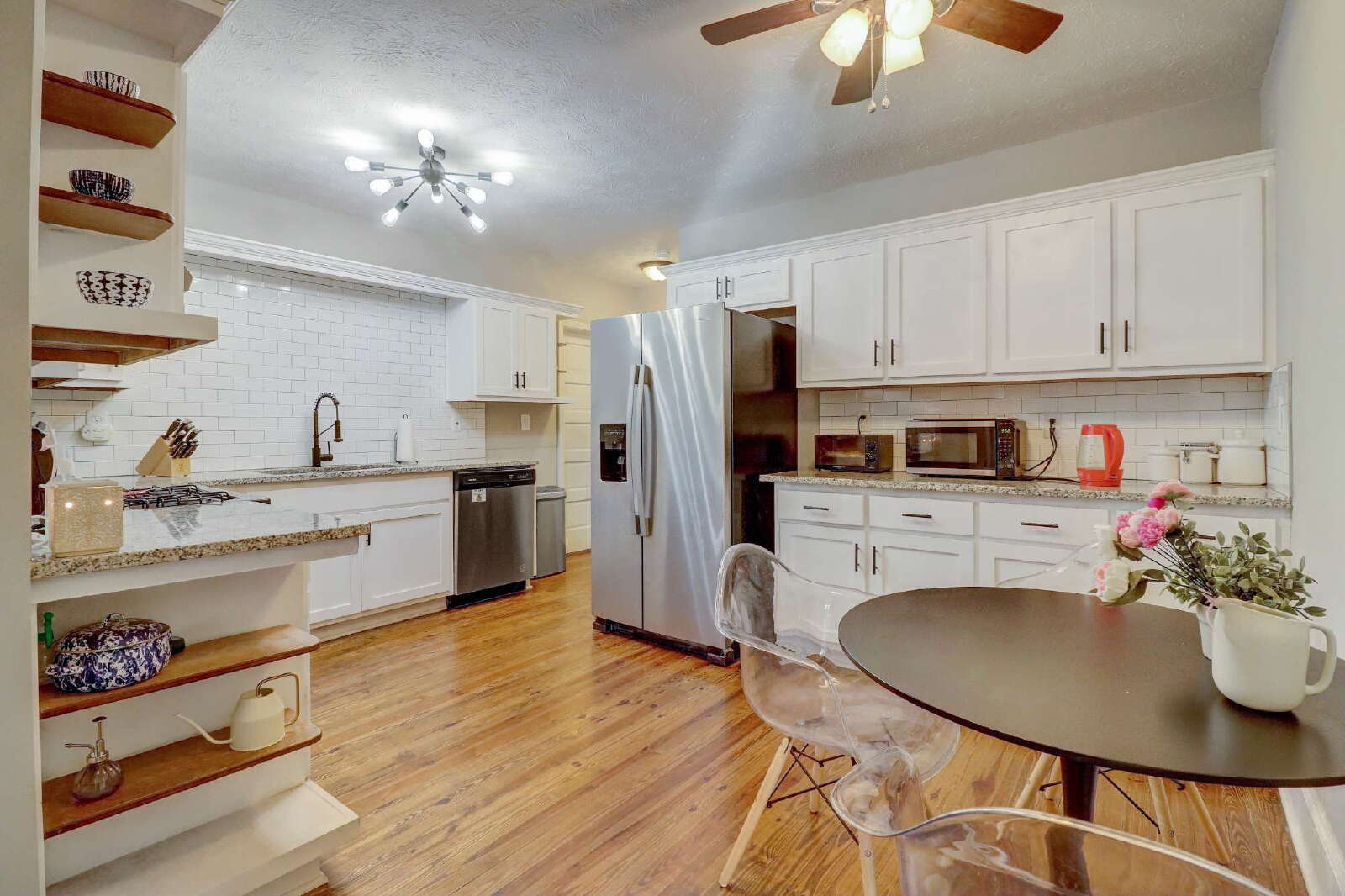 The kitchen offers ample cabinetry and storage, highlighted by a spacious walk-in pantry—perfect for everyday living and entertaining. Both bathrooms showcase sleek, modern designs and updated fixtures, adding to the home’s stylish appeal.